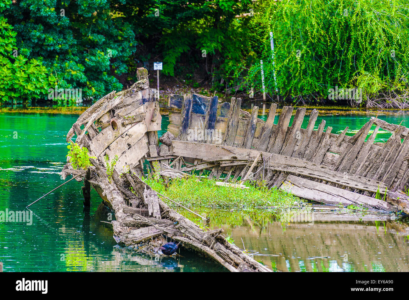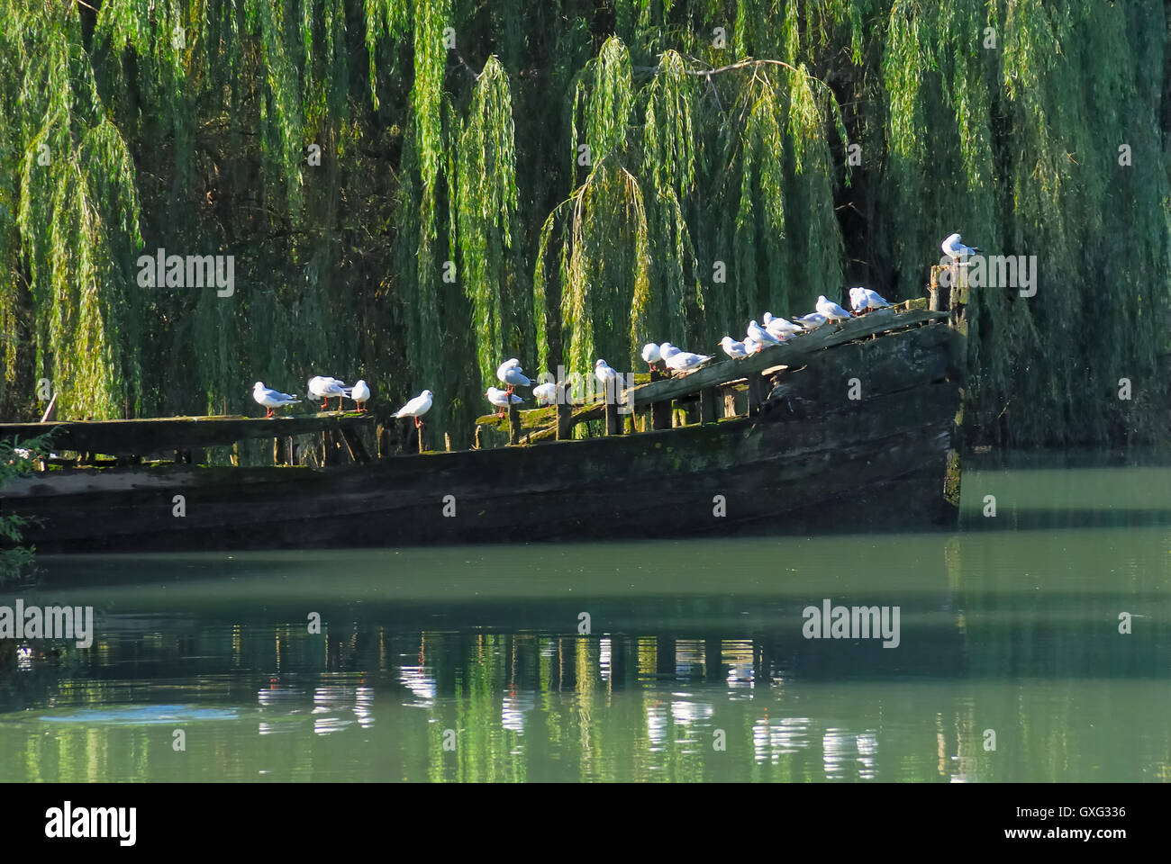 Sile River Casier Treviso Veneto Italy The Burci Cemetery The Burci Were Old Cargo Boats Seagulls On A Wreck Of Burcio Stock Photo Alamy